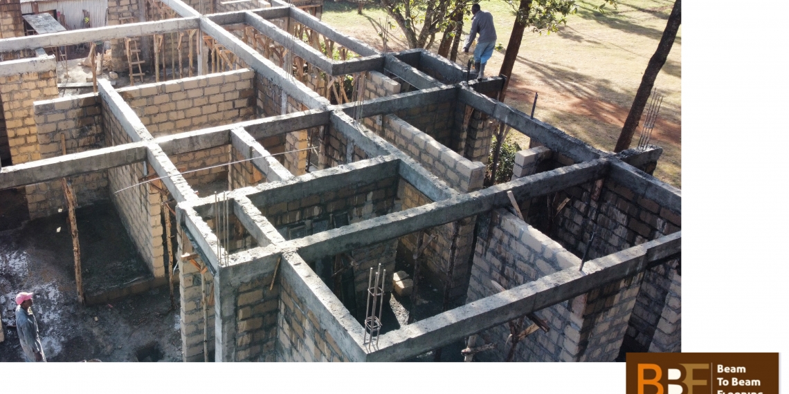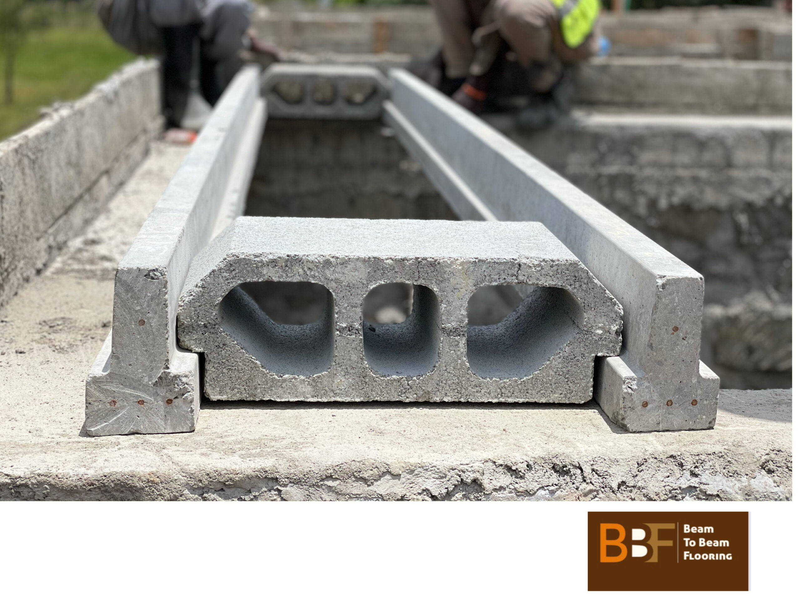Beam-to-beam flooring (BBF) can be described as an economic, safe and functional system currently being utilized in slab construction both locally and internationally. It comprises of high performance pre-stressed concrete beams, concrete hollow blocks and a topping that work together to result in a robust slab. The pre-stressed concrete T-beams have a 100mm wide and 50mm deep flange with a web that is 50mm wide and 100mm deep. It is these T-beam joists that work in tandem with the concrete hollow blocks to support the 50mm topping and all manner of design loads imposed on them.